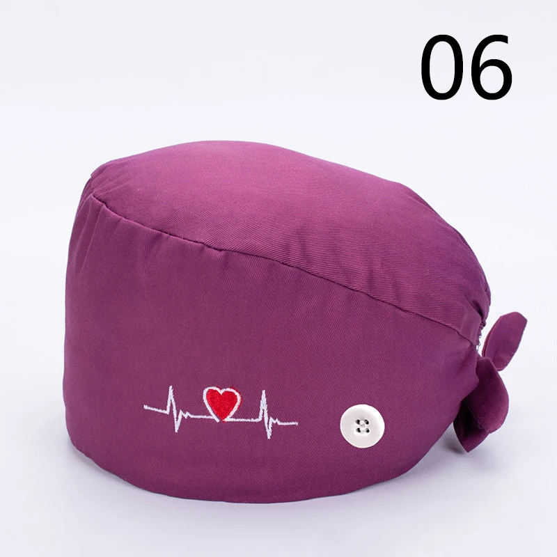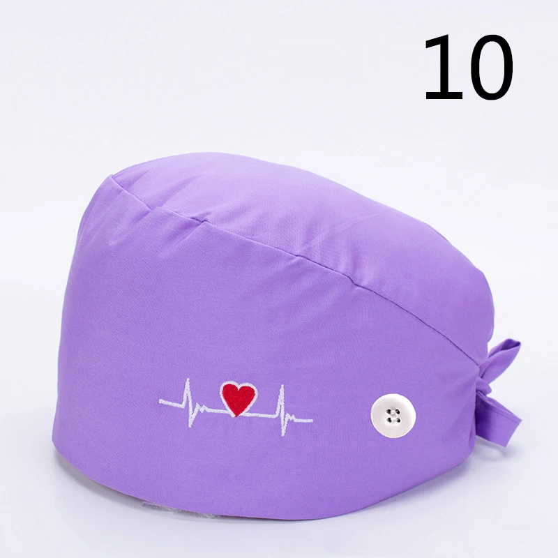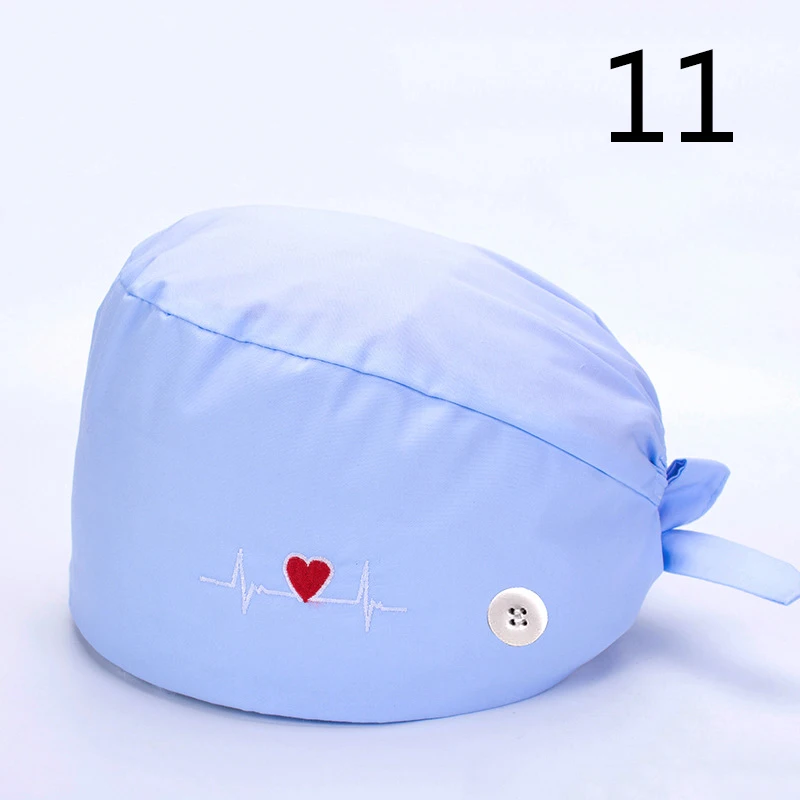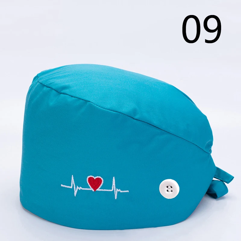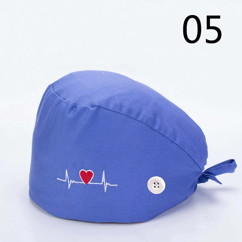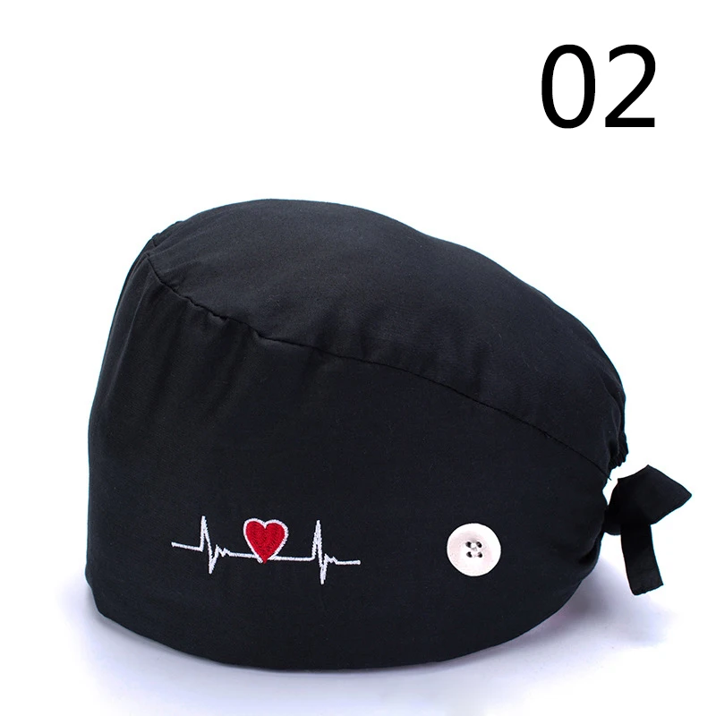 Fashion Printed Doctor Work Hats Causal Unisex Operating Room Hat For Nurse Embroidered Dustproof Hair Surgical Cap With Button