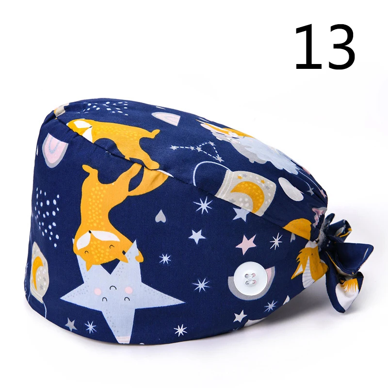 Home / Accessories / Fashion Printed Doctor Work Hats Causal Unisex Operating Room Hat For Nurse Embroidered Dustproof Hair Surgical Cap With Button